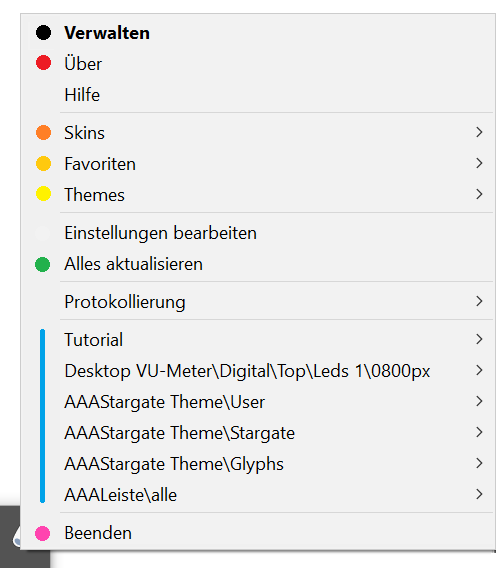 - Pink: Beendet Rainmeter.