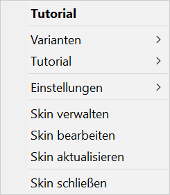 Skin-Menü (entweder über den blauen Punkt von oben oder mit Rechtsklick auf den Skin):